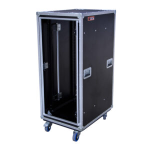 20RU Anti-Vibration 19″ Rack Mount Case with Slide-Away Doors & Castors; 790mmD – Black