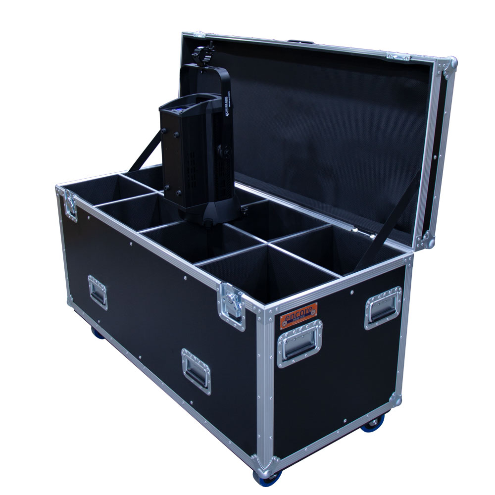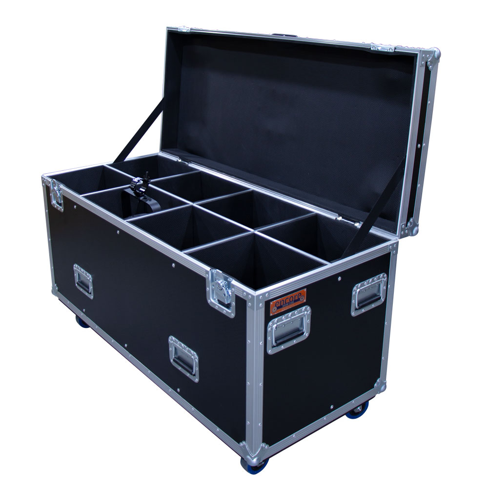The Encore 8 Unit 1K Fresnel Lighting Road Case is engineered to protect and transport up to eight 1,000-watt Fresnel lighting fixtures safely and efficiently. Compatible with popular models including Show Pro RGBAL Fresnel (1k), Show Pro ZE2 H/P Fresnel (2k), and Show Pro ZMI HD Manual 200mm Fresnel (1k), this case offers secure storage with custom compartments designed to fit these fixtures precisely. Its rugged black exterior and premium hardware provide durability for touring, live production, and rental environments.