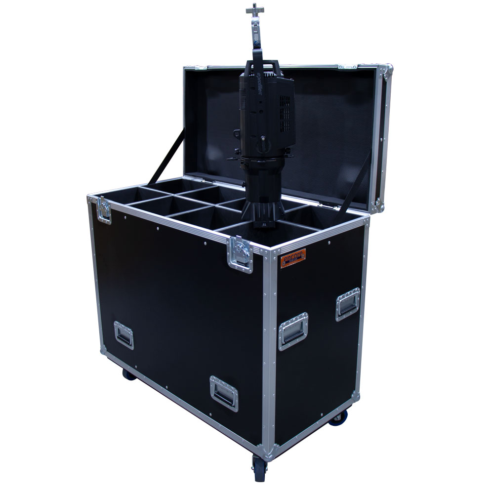 The Encore 8 Unit Profile Lighting Road Case is designed to safely store and transport up to eight profile lighting fixtures. Crafted with a durable black exterior and reinforced hardware, this case offers reliable protection against the rigors of touring, live events, and rental use. Its internal compartments and customizable foam inserts keep your lighting equipment secure and organised, reducing the risk of damage during transit.